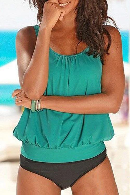 Black Flamingo 3 Piece Swim Tank Top with Shorts and Bra Modest