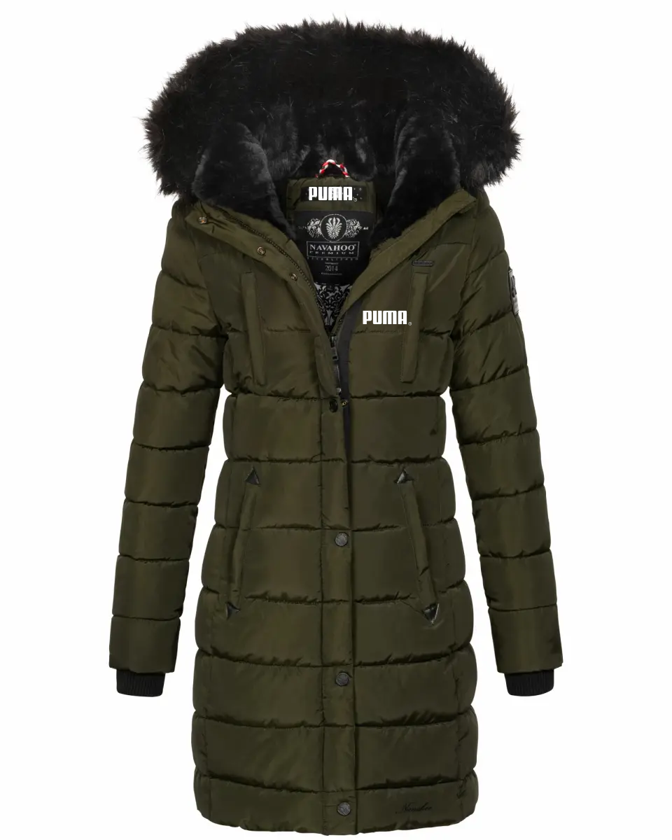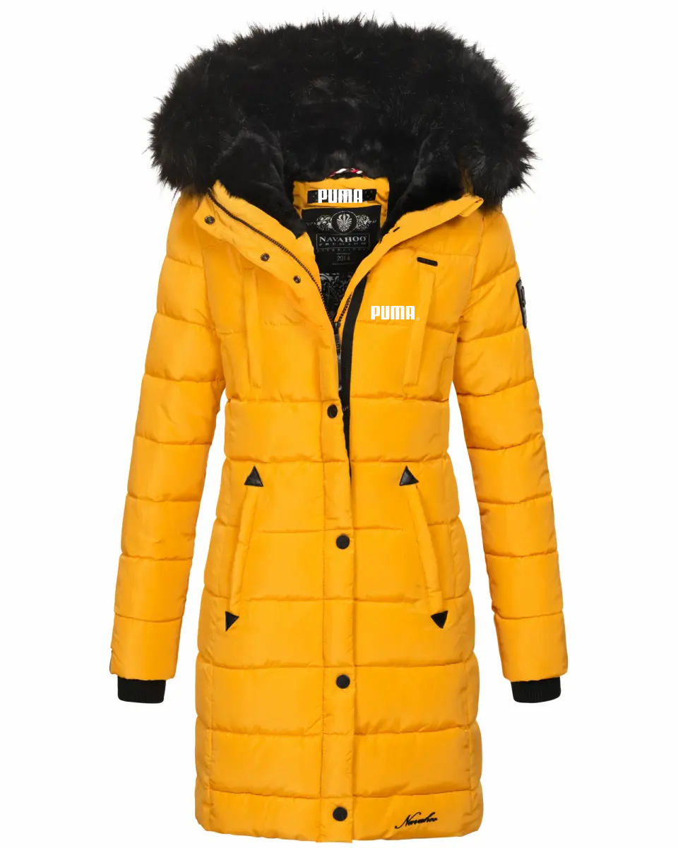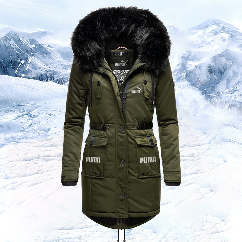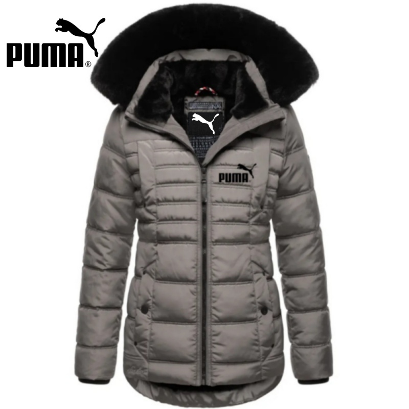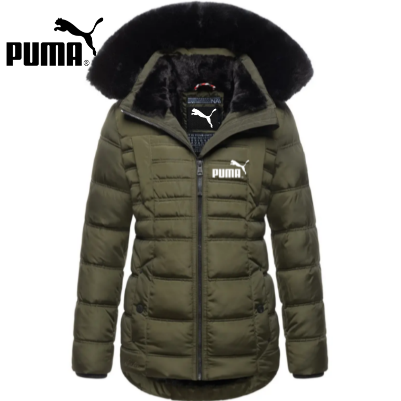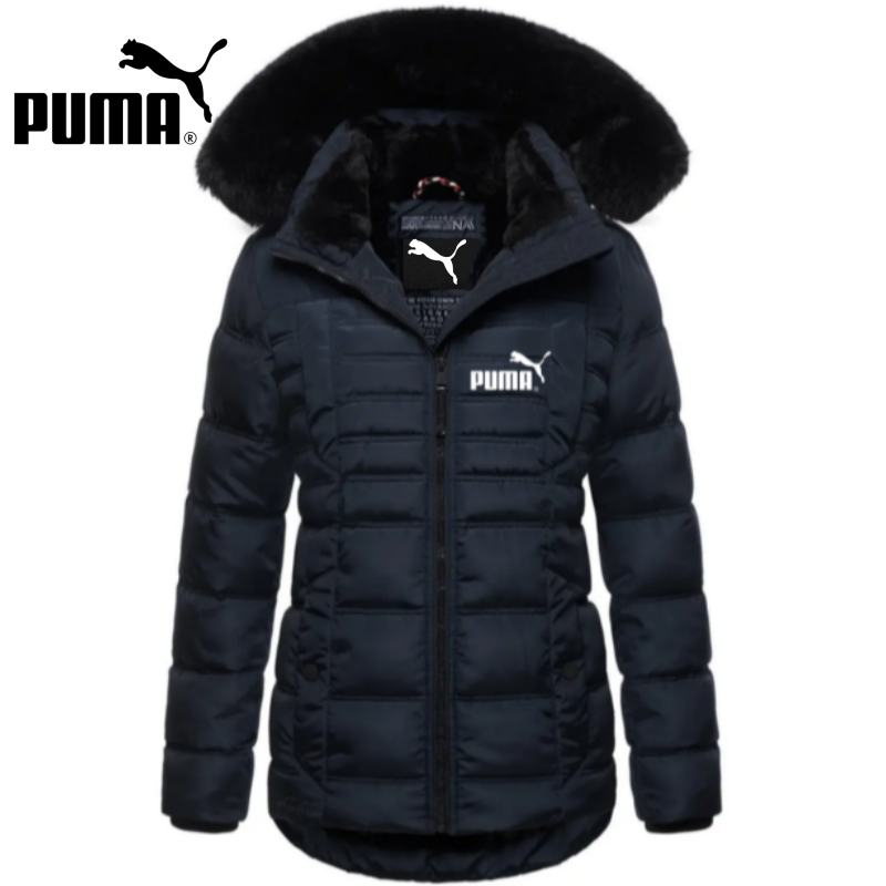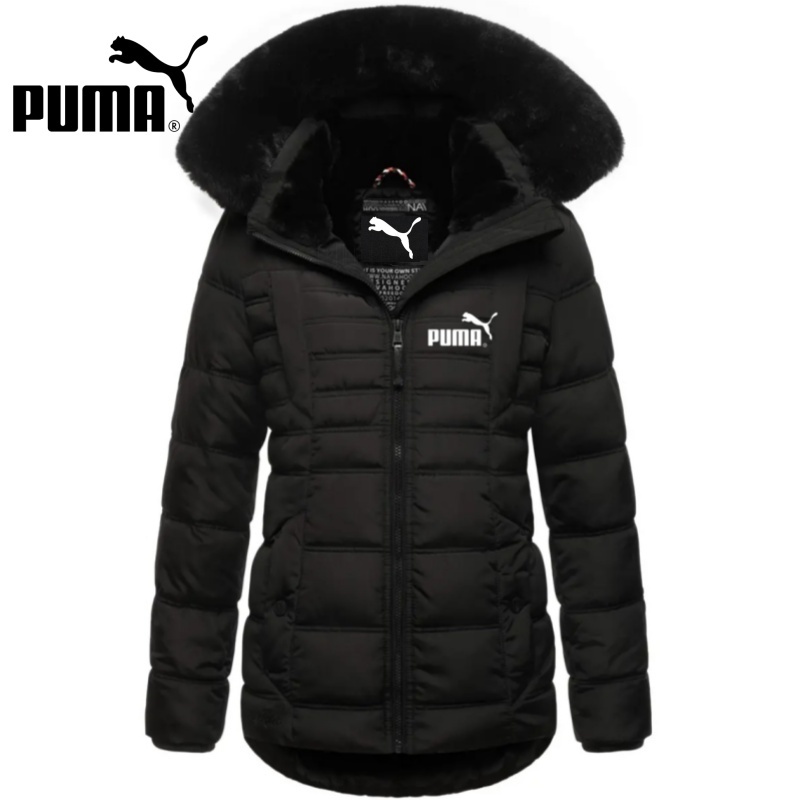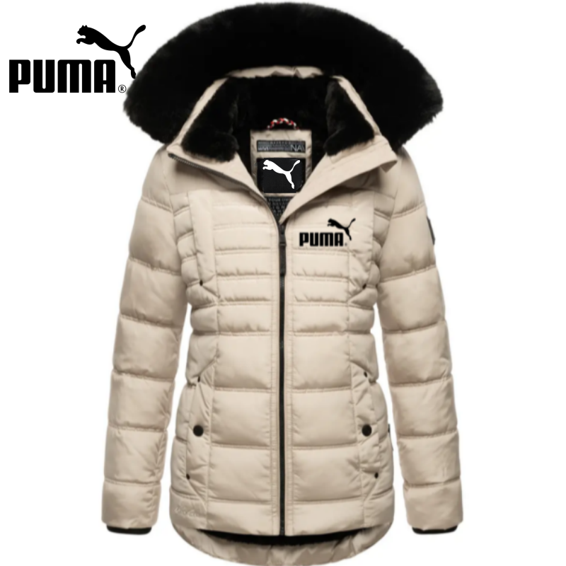 Jachetă căptușită de lungime mijlocie, cu fermoar, cu guler de blană