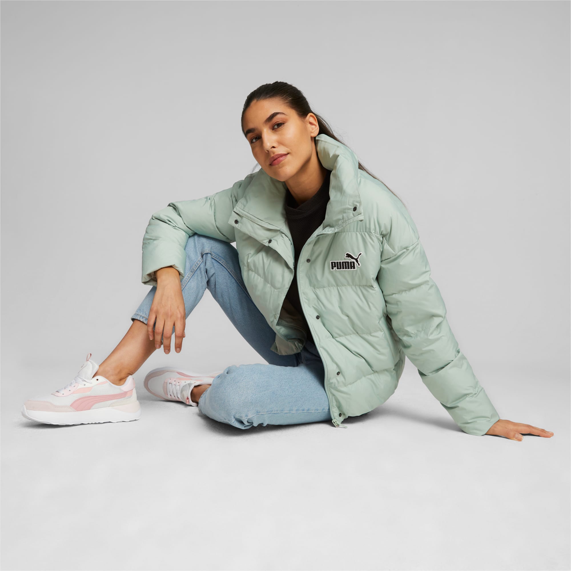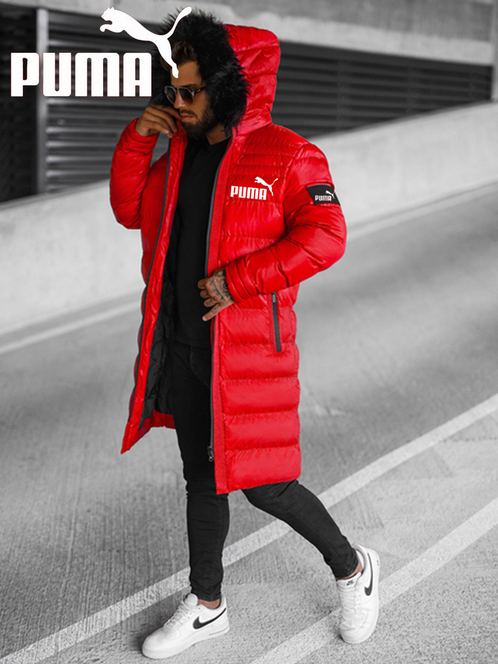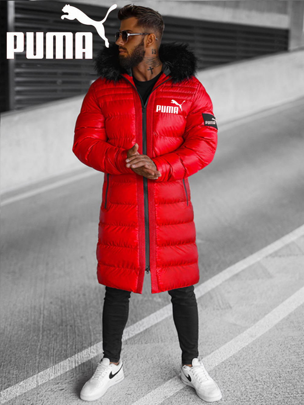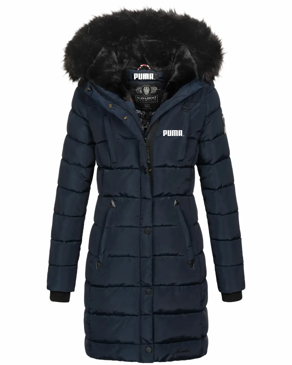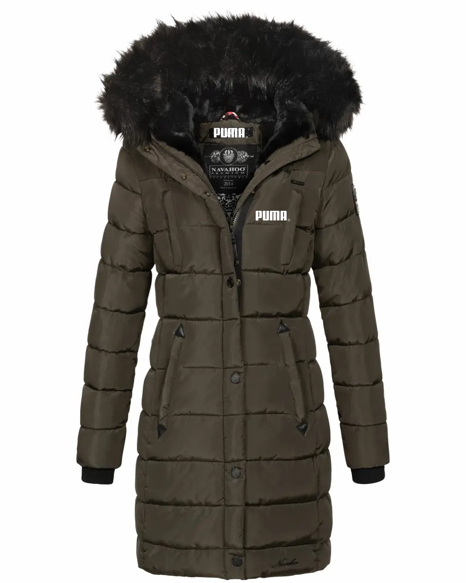 Jachetă căptușită de lungime mijlocie, cu fermoar, cu guler de blană